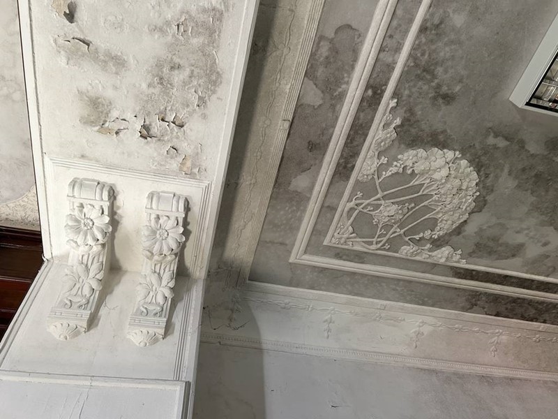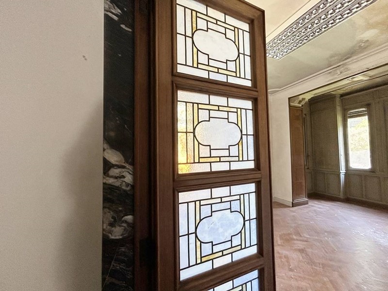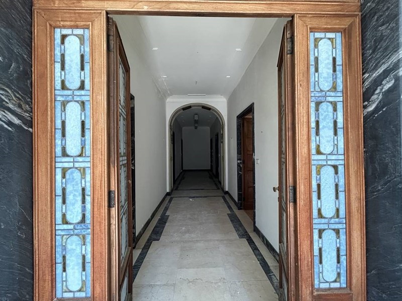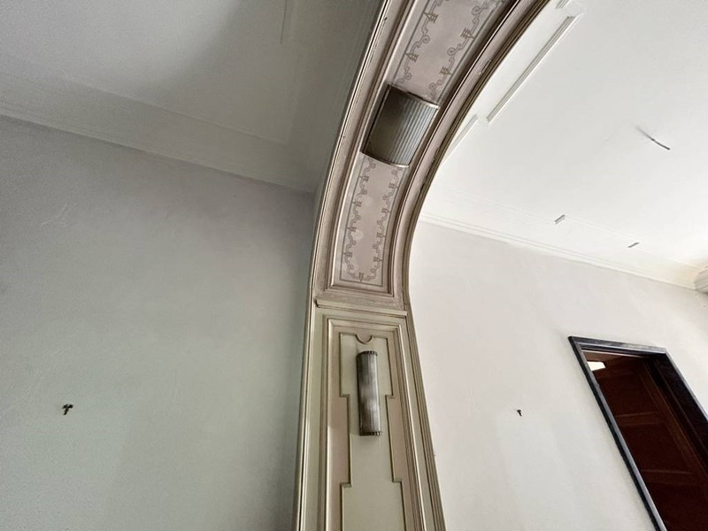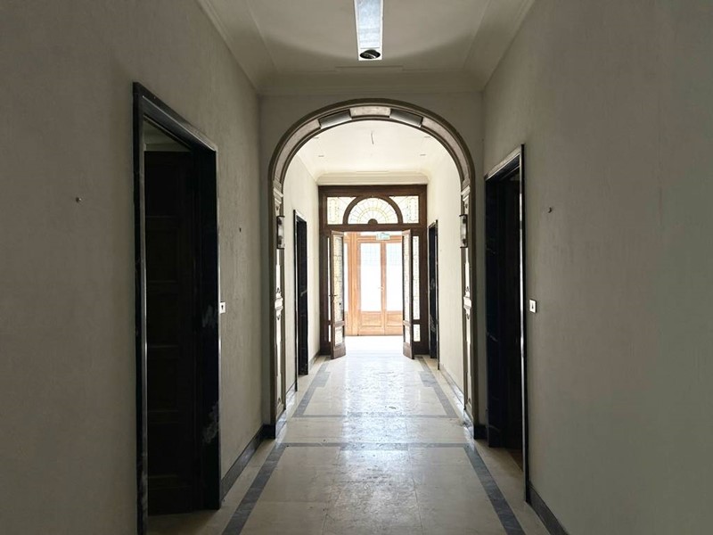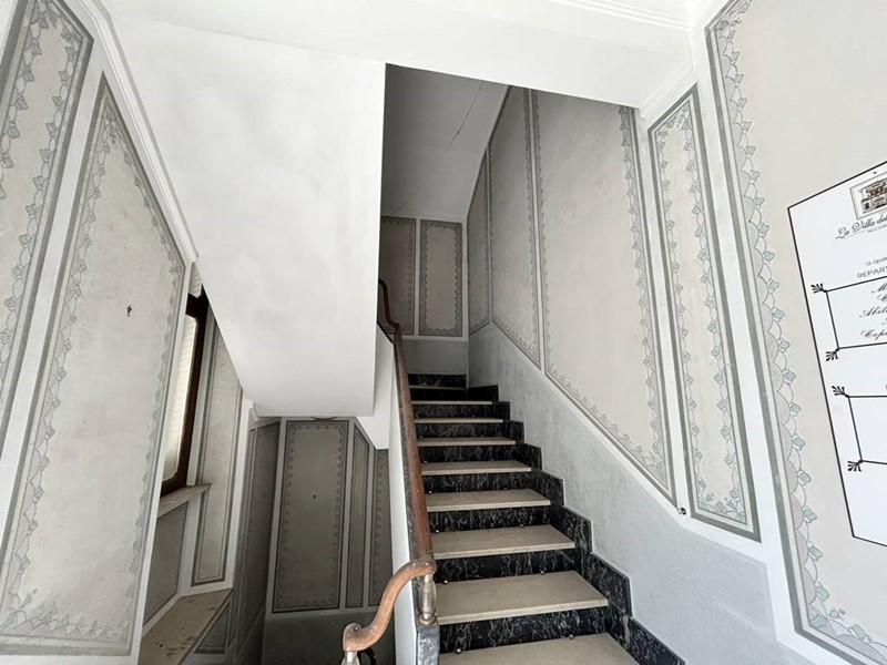 La pavimentazione è prevalentemente in marmo ad eccezione di qualche stanza in parquet, oltre ad essere caratterizzata da affreschi, rosoni e capitelli.