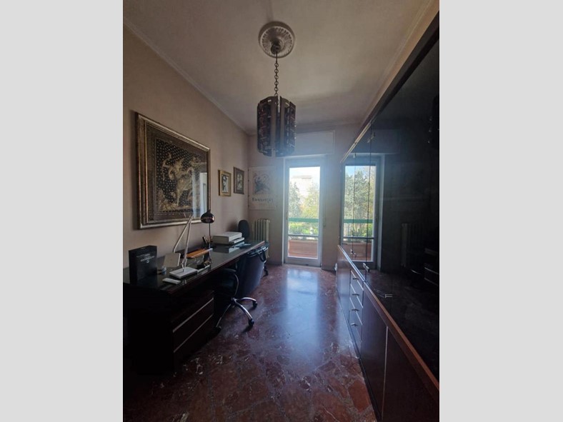L'appartamento è composto da ingresso, ampio e luminoso salone con balcone, studio, due camere matrimoniali, cucina abitabile con balcone di servizio, due bagni e ripostiglio.