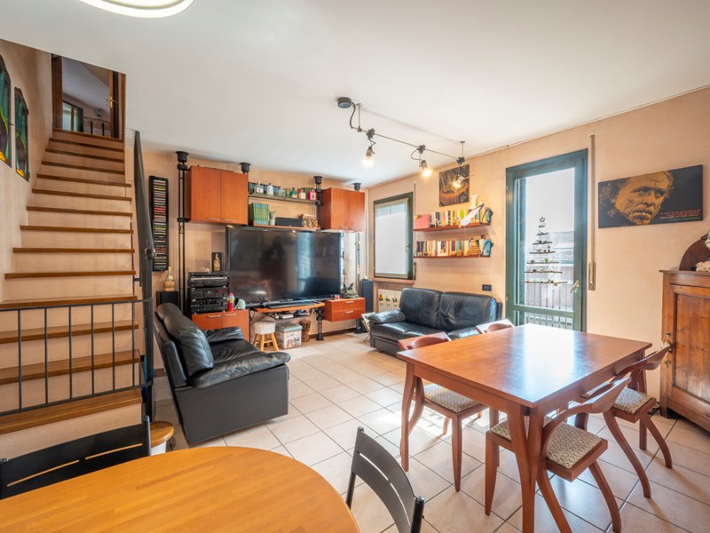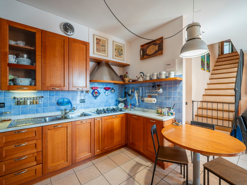 L'abitazione è disposta su due livelli, il primo livello è composto dalla sala dotata di terrazzino, cucina, disimpegno, bagno completo dotato di finestra, una camera matrimoniale e ripostiglio; tramite una comoda scala interna in muratra rivestita in parquet si ha l'accesso al secondo livello costituito da due camere matrimoniali entrambe servite da un balcone e un secondo bagno finestrato dotato di vasca e zona lavanderia.