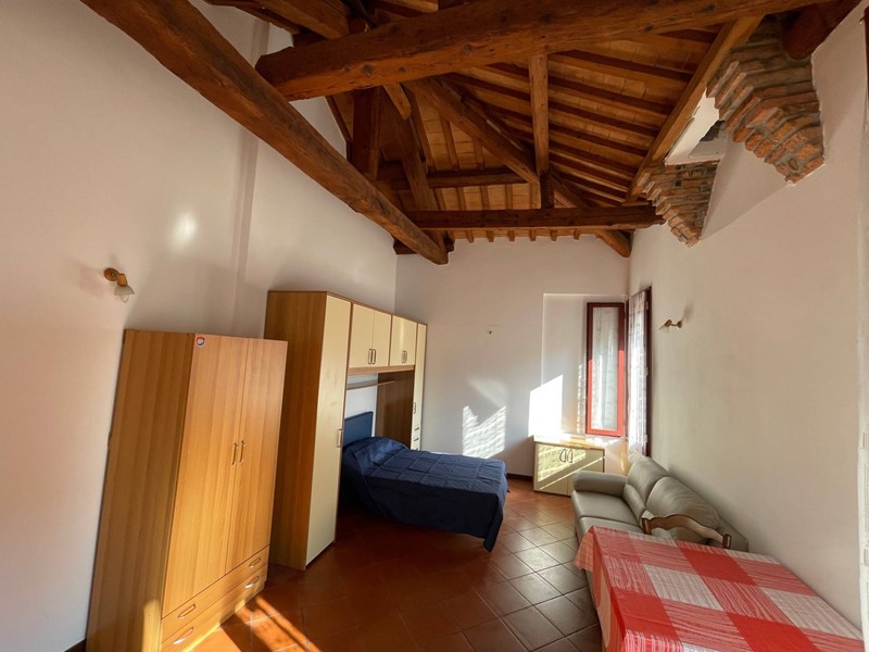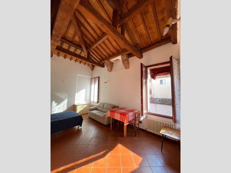 In tranquillo contesto storico ristrutturato, interno rispetto alla strada, monolocale arredato con letto matrimoniale, angolo cottura, e bagno. Completamente arredato con lavatrice.
