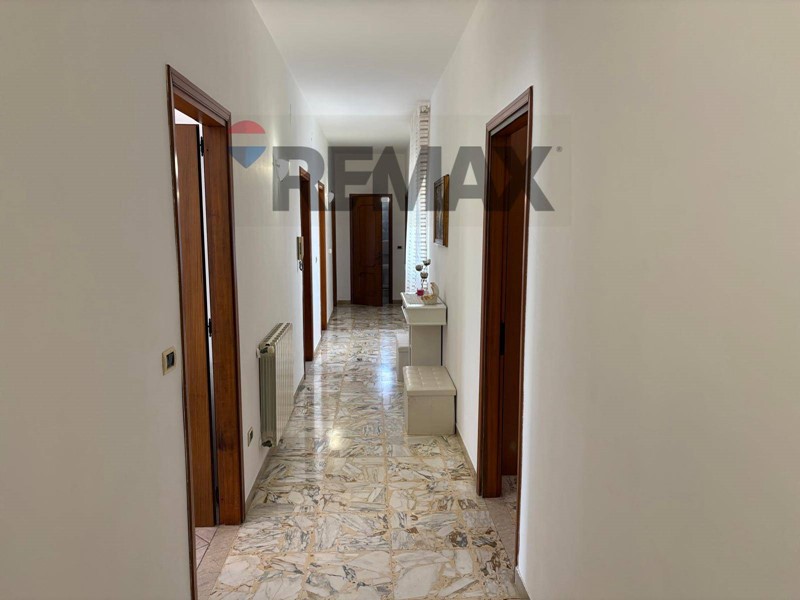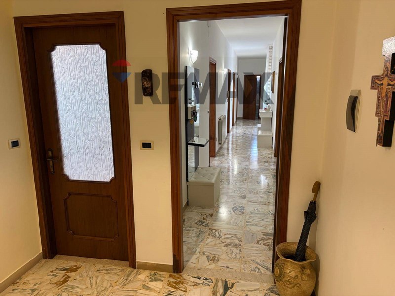 L'ingresso si apre su un disimpegno, al cui lato vi è un ampio soggiorno . A seguire un lungo corridoio che permette di accedere alle varie camere: cucina abitabile, 3 camere da letto, ripostiglio, bagno, doppio servizio