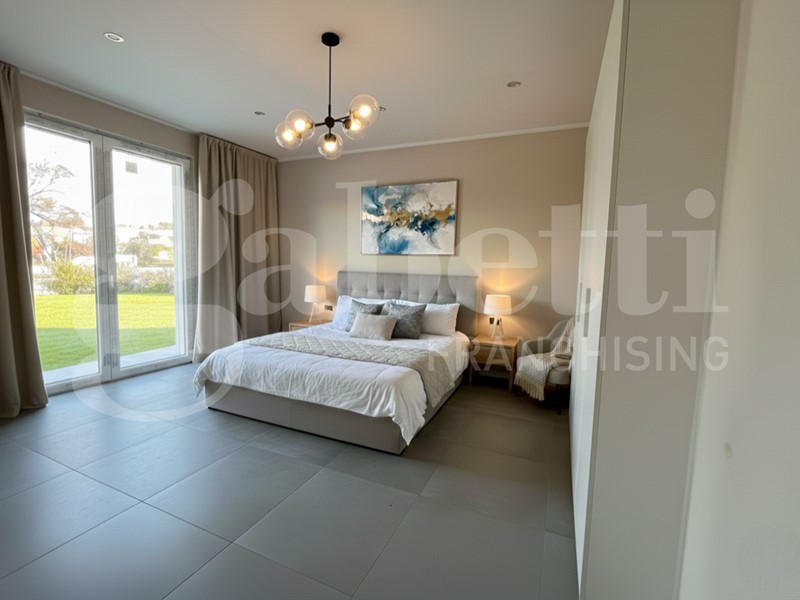 Quest'unità vanta spazi ben distribuiti e finiture di alta qualità; una zona giorno che affaccia su un portico e su un ampio giardino (circa 192 metri quadrati), una camera matrimoniale, una camera doppia, un ripostiglio/lavanderia e due bagni. Entrambe le camere affacciano su un secondo portico con accesso diretto al giardino.