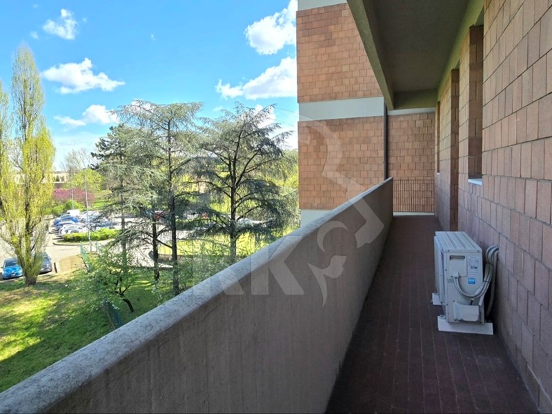 PARTE ESTERNA - Lo stabile è dotato di ascensore ed è in buone condizioni. Vero punto di forza è il grande balcone che si sviluppa per tutta la larghezza dell'appartamento, offrendo un affaccio panoramico e rilassante direttamente sul verde circostante.