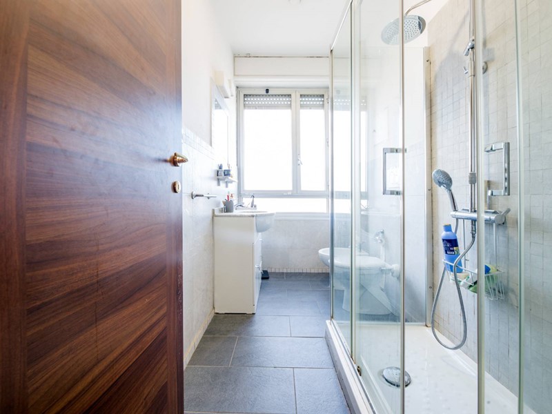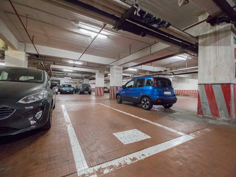 Gli infissi e le finestre sono in alluminio e lo stato di conservazione è buono. Completa la proprietà un posto auto nei fondi del palazzo.