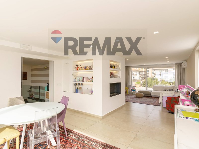 Limmobile si sviluppa su due livelli, e precisamente, al secondo ed ultimo piano di un signorile residence riservato ma, allo stesso tempo, in zona centrale e servita. Il piano inferiore, della superficie di 111 mq, dispone di un grande salone con doppia esposizione su balcone perimetrale panoramico, zona notte disimpegnata da elegante porta scorrevole con tre comode camere da letto, servizio con doccia e funzionale lavanderia con doppio servizio.