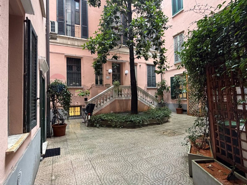 L'appartamento si trova al primo piano di un edificio risalente ai primi del '900 in buono stato di manutenzione; particolare l'esposizione sulla corte interna, molto artistica e ben conservata, con la tipica conformazione della casa di ringhiera (L'accesso avviene comunque dal vano scale condominiale)