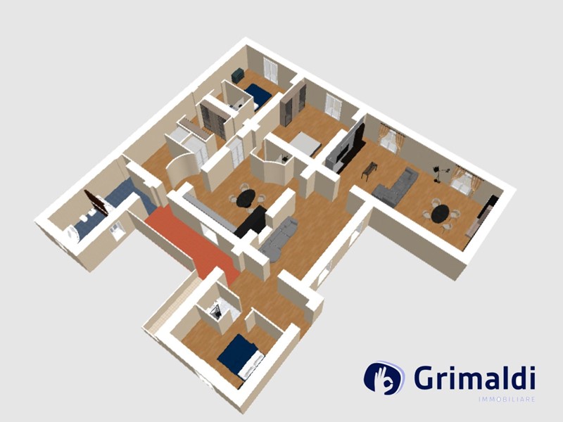L'immobile si compone di: ingresso, salone doppio, soggiorno, cucina abitabile, tre camere da letto, quattro bagni e un vano lavanderia.