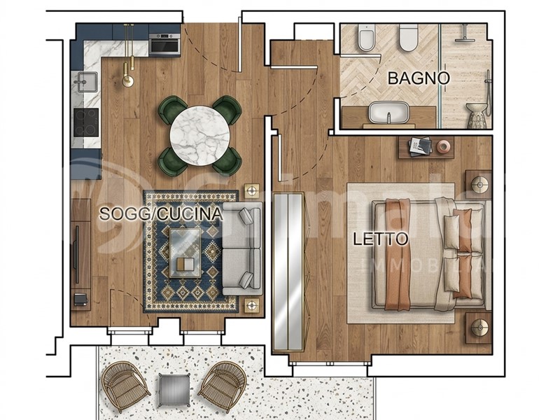 Outdoor: accesso diretto a un grazioso terrazzino vivibile.