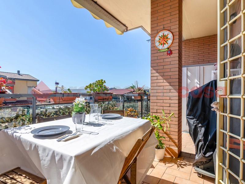 L'ingresso conduce a un comodo disimpegno che apre su un soggiorno, affiancato da una cucina a vista già arredata, di marca Snaidero. Proprio dal soggiorno si accede al balcone vivibile, comodamente attrezzabile con tavolino, ideale per pranzi e cene all'aperto, perfetto per godersi le serate estive all'aperto. La zona notte è composta da due camere da letto e doppi servizi, una soluzione ideale per famiglie o per chi desidera maggiore comfort e praticità. Completa la proprietà un secondo balcone.