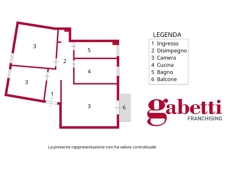 L'immobile si compone di ingresso, tre ampie camere, cucina, bagno recentemente ristrutturato e ripostiglio.