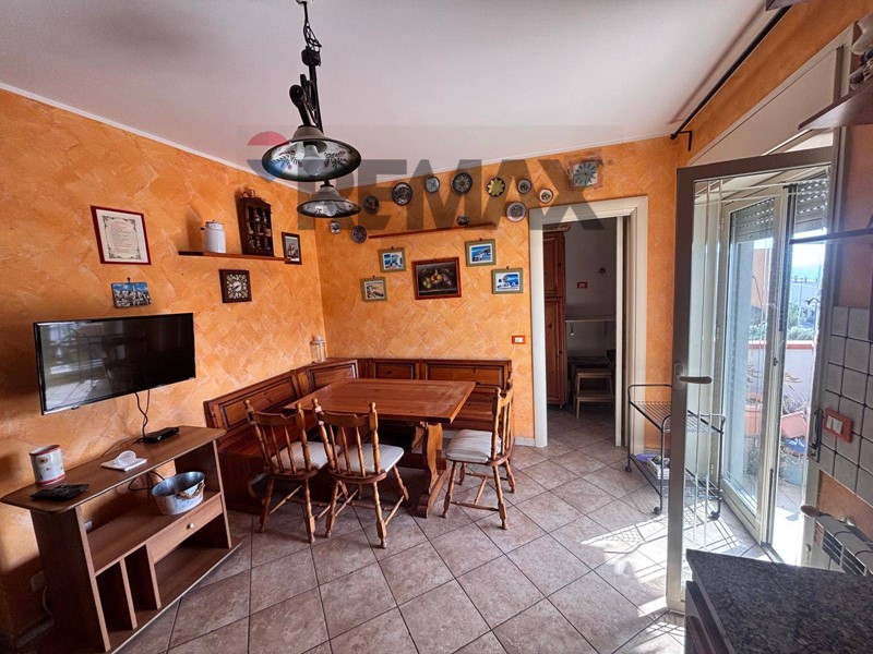 La cucina è abitabile e ben organizzata, dotata di pratico ripostiglio e servita da unulteriore balconata con vista mare, che rende lambiente ancora più arioso e funzionale.