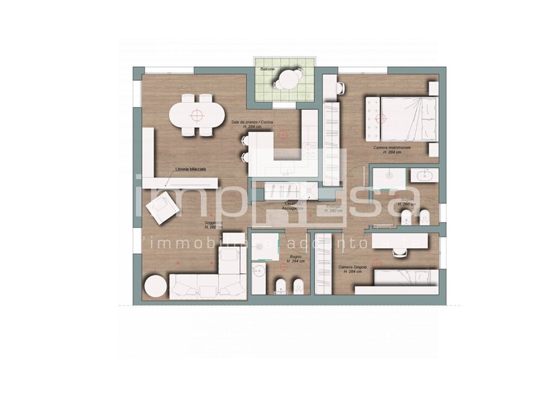 L'appartamento è sviluppato tutto su un livello in un contesto condominiale vicino a tutte le comodità della città.
