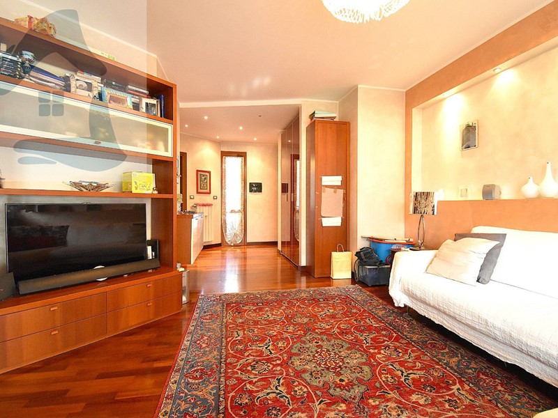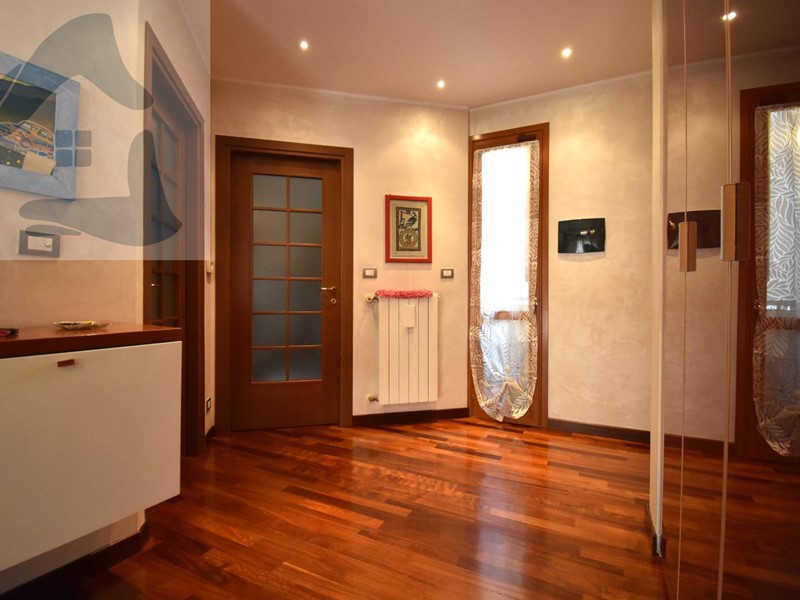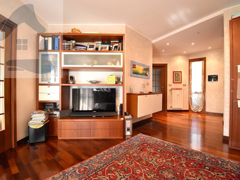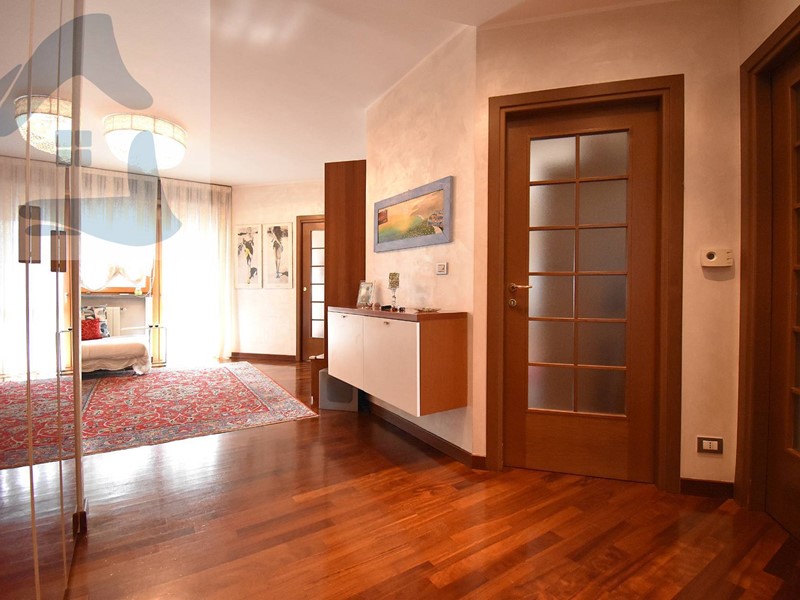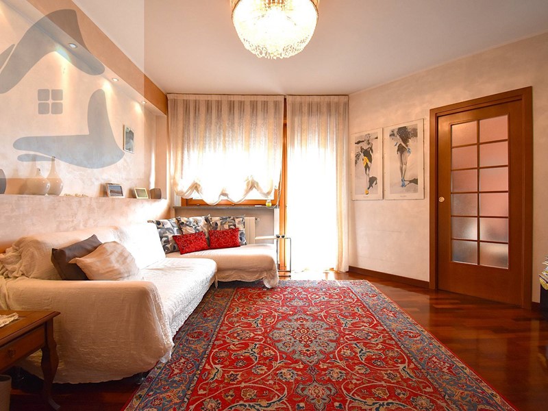 Lingresso si apre su un accogliente salotto, ben rifinito e valorizzato dal parquet, che crea un ambiente caldo e piacevole da vivere.
