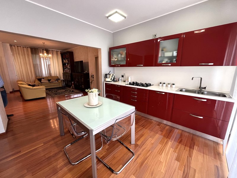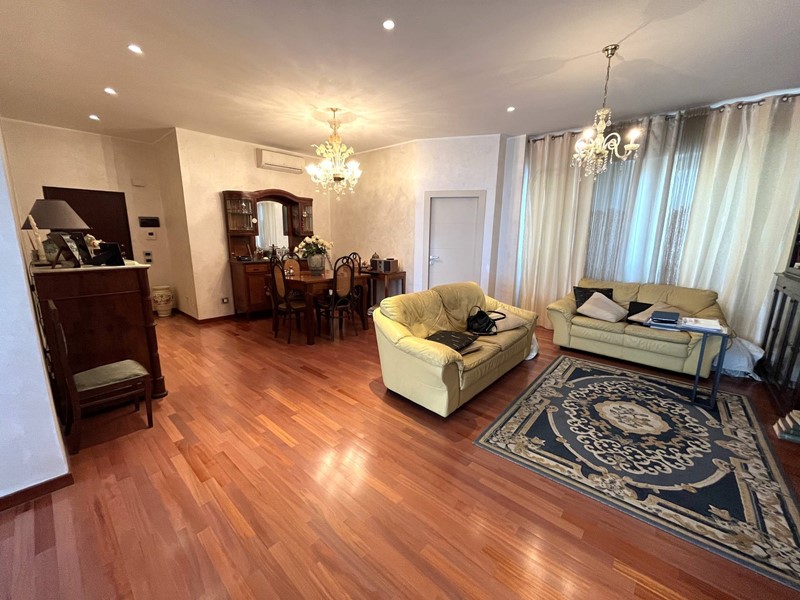 Completano la proprietà un garage di 20 mq e la disponibilità di un parcheggio nell'area condominiale. L'edificio è servito da ascensori nuovi e l'appartamento è dotato di climatizzazione e riscaldamento autonomo.