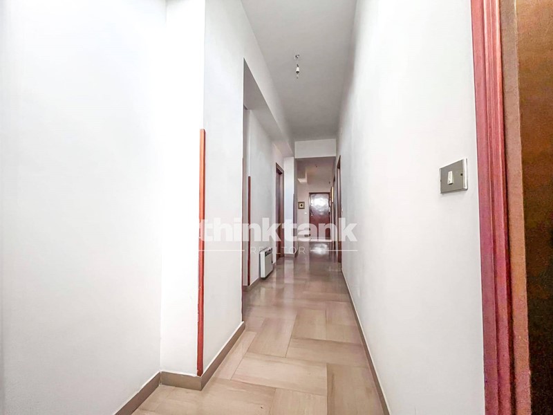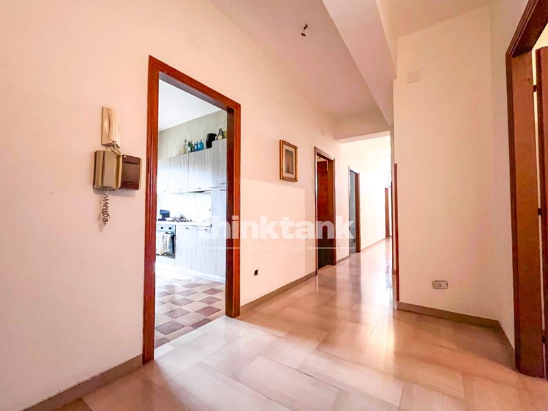 Lappartamento accoglie con un ampio ingresso che introduce a un lungo corridoio centrale, elemento tipico delle abitazioni di grande metratura che consente una distribuzione razionale e funzionale degli ambienti.