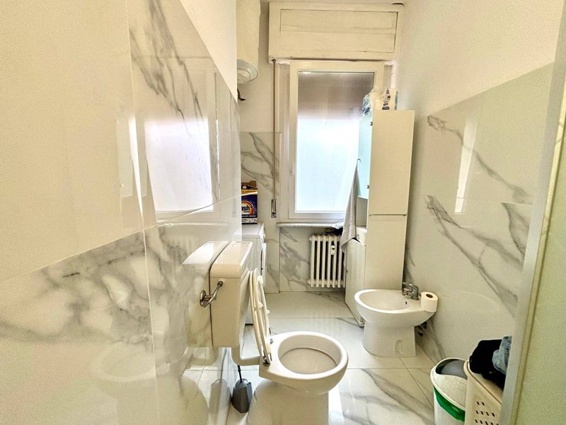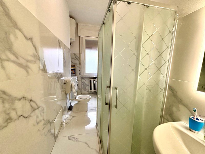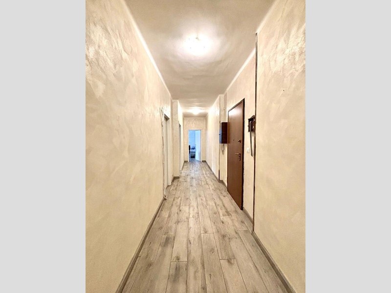 Ingresso su ampio disimpegno, cucina e sala living, 2 camere da letto matrimoniali, bagno finestrato con box doccia e balcone.