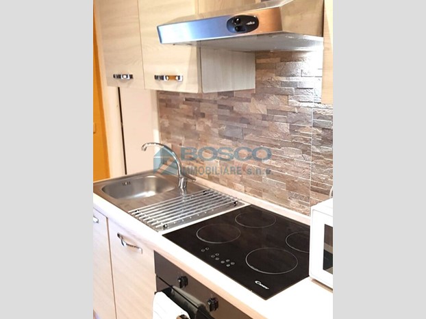 L’appartamento è composto da soggiorno con angolo cottura e balcone, camera matrimoniale e bagno con doppio accesso.