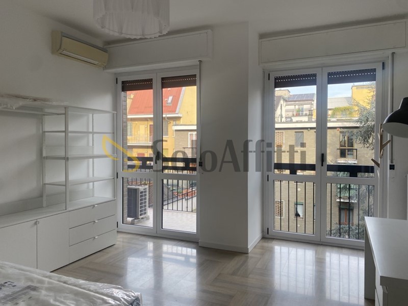 In posizione strategica, a pochi passi dalle principali università e ben collegata con i mezzi pubblici, proponiamo in affitto un luminoso appartamento completamente arredato, situato al quinto piano di un elegante condominio dotato di servizio di portineria. L'immobile completamente ristrutturato, è pensato per offrire il massimo comfort a studenti e lavoratori, ed è composto da tre camere da letto, ciascuna arredata con letto, scrivania e armadiature. Bagno finestrato con doccia, cucina completamente attrezzata, con lavastoviglie e lavatrice. L'appartamento gode di doppia espozione e due balconi, riscaldamento centralizzato, spese mensili euro 300,00. Si richiedono referenze