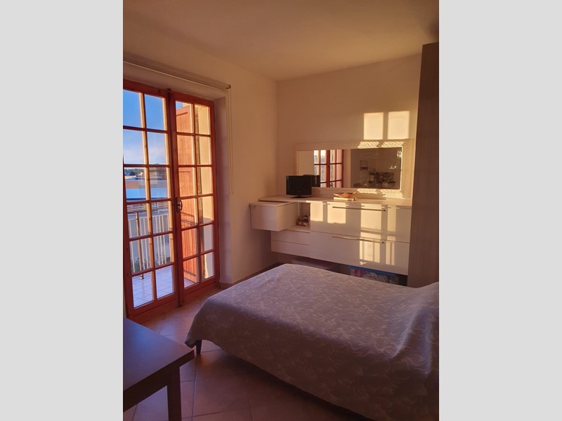 La zona notte ha due camere una camera doppia e una piccola cameretta ( studio) dove si puo' comunque mettere un letto singolo a ponte entrambe le camere hanno porta finestra che esce in un balcone ampio che abbraccia la zona notte.