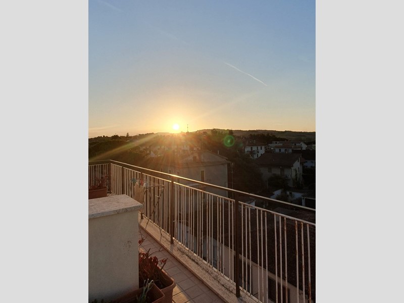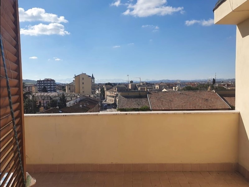 L'appartamento e' dotato di ampio salone con camino, cucina con travi a vista bianche con uscita sul terrazzo, il terrazzo in parte e' di proprieta' esclusiva in parte condominiale ma con accesso diretto , il panorama e' meraviglioso si scoprono le colline marchigiane e i monti sibillini, si puo' godere di panorami mutevoli nei colori, albe e tramonti incantevoli visibili anche dalle ampie finestre della zona giorno.