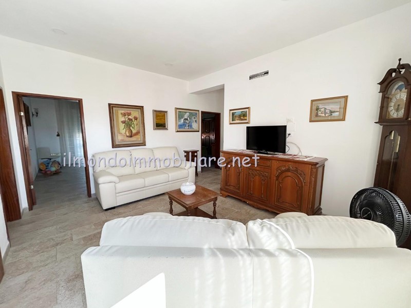 Sala con divani, cucina ampia affacciata su terrazza , due camere matrimoniali ed una con due lettini; due bagni entrambi con doccia e finestra