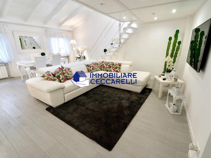 Massa - Centro Storico, fuori dalla ZTL e lontano dalla movida notturna, appartamento al terzo ed ultimo piano di piccola palazzina ben mantenuta e dotata di ascensore, di sole 3 unità. L'immobile si compone di ingresso su ampio e luminoso soggiorno con soppalco che rende particolare la zona giorno, zona cottura in posizione riservata con moderna cucina su misura; zona notte con due camere matrimoniali di cui una con cabina armadio, due bagni e ripostiglio con lavanderia. L' appartamento è stato oggetto di una recente e radicale ristrutturazione, rifinito con materiali di pregio e arredato con gusto.
