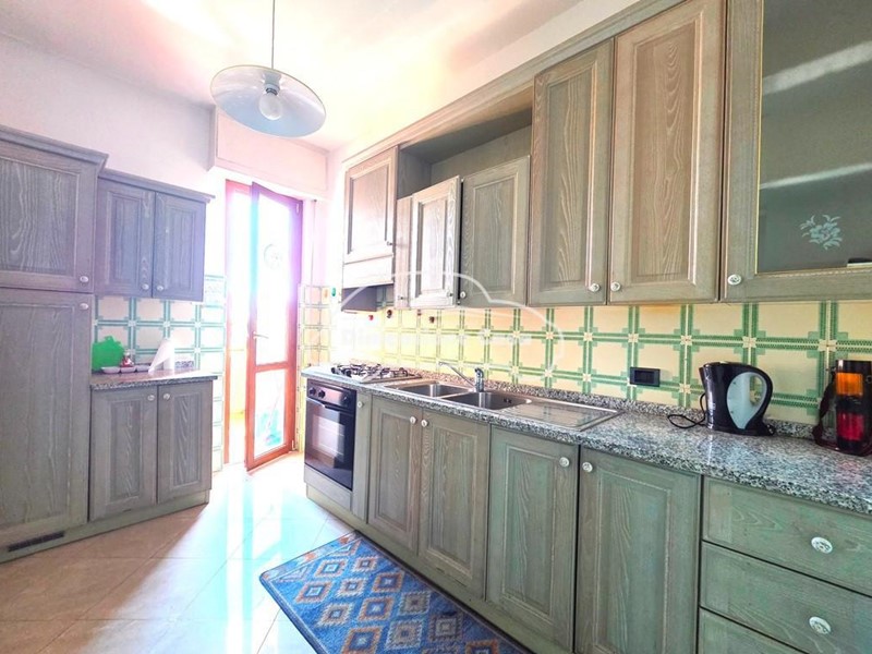 La zona giorno offre un ingresso accogliente, un soggiorno luminoso con accesso al terrazzo e una cucina abitabile servita da un pratico balcone. La zona notte comprende tre camere da letto e doppi servizi.