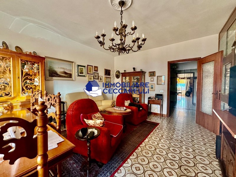 L’ immobile si compone di ingresso, luminoso soggiorno con terrazza vivibile e piacevole vista mare, cucina abitabile con balcone, due ampie camere matrimoniali e doppi servizi.