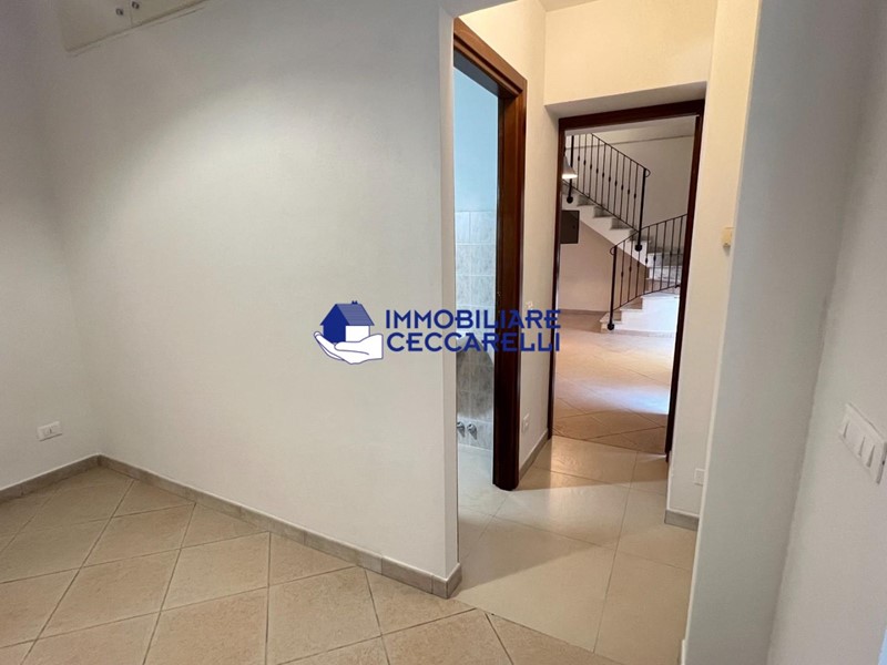 L’immobile si apre su un soggiorno open space con cucina a vista; al piano terra si trovano inoltre disimpegno, cameretta, bagno e un secondo ingresso indipendente. Al piano primo è presente la camera matrimoniale con secondo bagno finestrato.