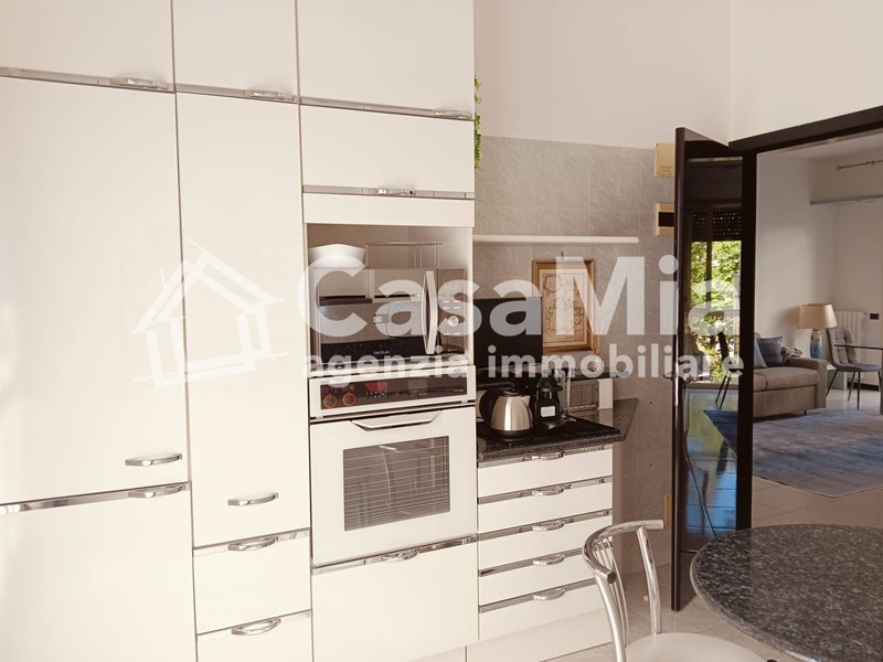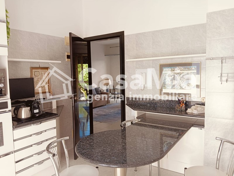 L'appartamento, posto al primo piano e raggiungibile con ascensore, si compone di ampio e luminoso soggiorno, cucina abitabile, corredata con piastre ad induzione, forno elettrico e microonde con affaccio sulla piazzetta interna da un balcone di servizio, disimpegno notte con un primo servizio finestrato completo di tutti i sanitari e vasca, un secondo bagno/lavanderia con doccia, grande camera matrimoniale, seconda camera con cabina armadio attrezzata e ripostiglio.