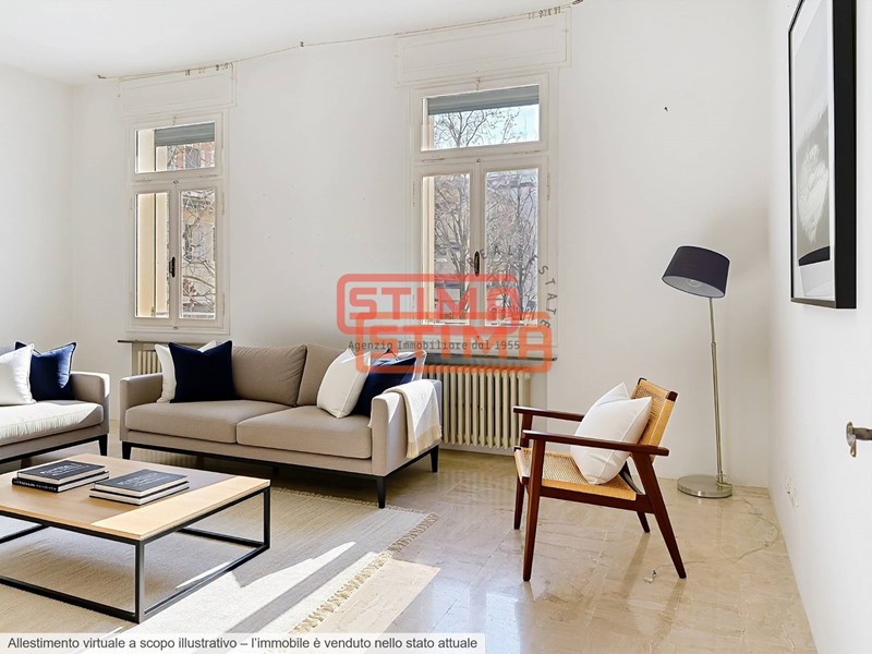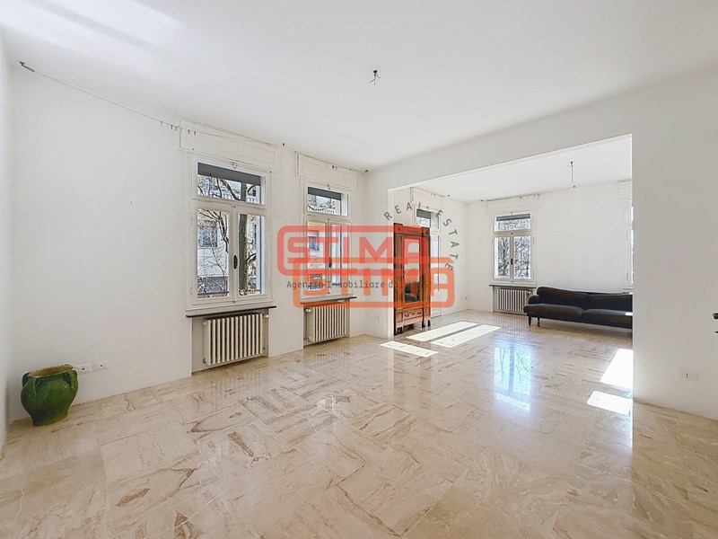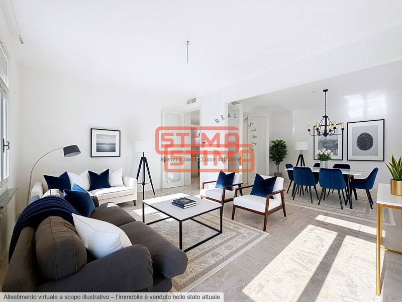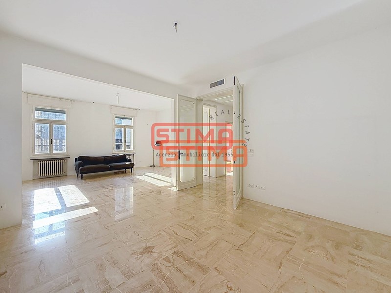 I pavimenti in legno, le altezze di 3 metri, e la canalizzazione dellaria condizionata conferiscono allappartamento un carattere raffinato e contemporaneo.
