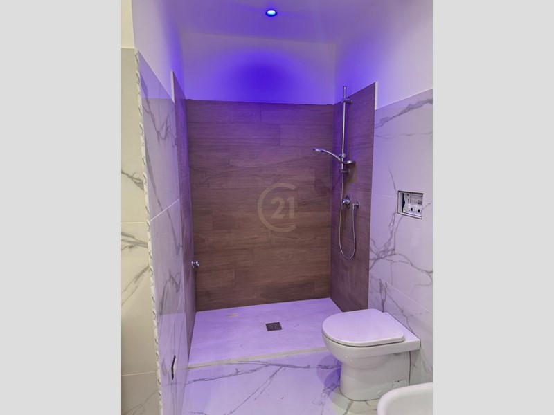 • Bagno elegante con doccia walk-in e finiture moderne