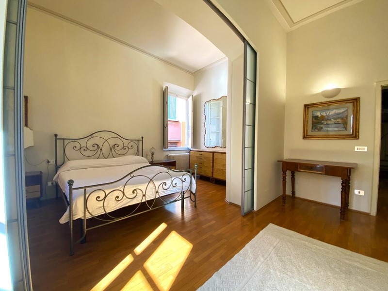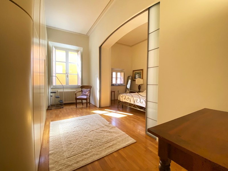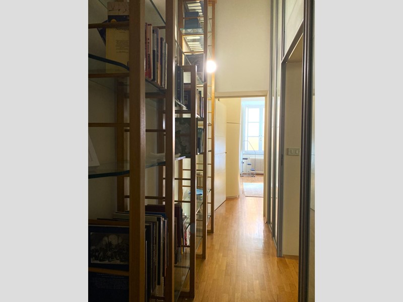 Un corridoio con grande libreria ci porta nella zona notte: una camera matrimoniale con anticamera/armadio e bagno con vasca e finestra e una seconda camera media utilizzabile anche come studio o salotto.