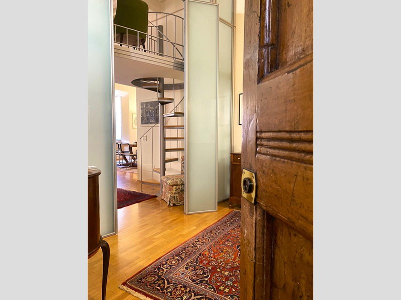 Caratterizzato da elementi architettonici curati e dalle finiture di pregio, le molte finestre fanno si che la luce possa valorizzare gli spazi interni; è così composto: ampio ingresso che introduce nella sala doppia, cucina abitabile e soppalco/studio frutto di un utilizzo delle grandi altezze dei soffitti.