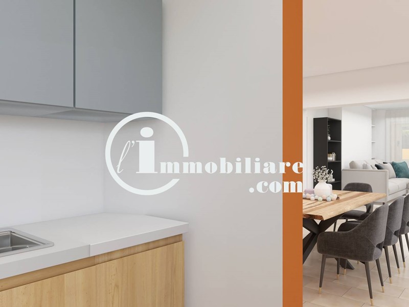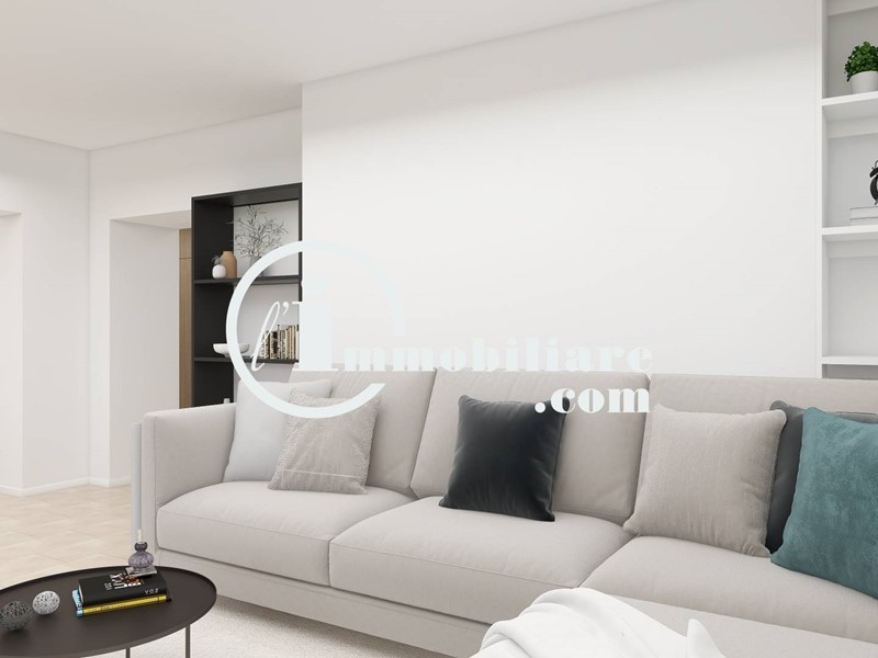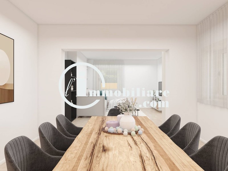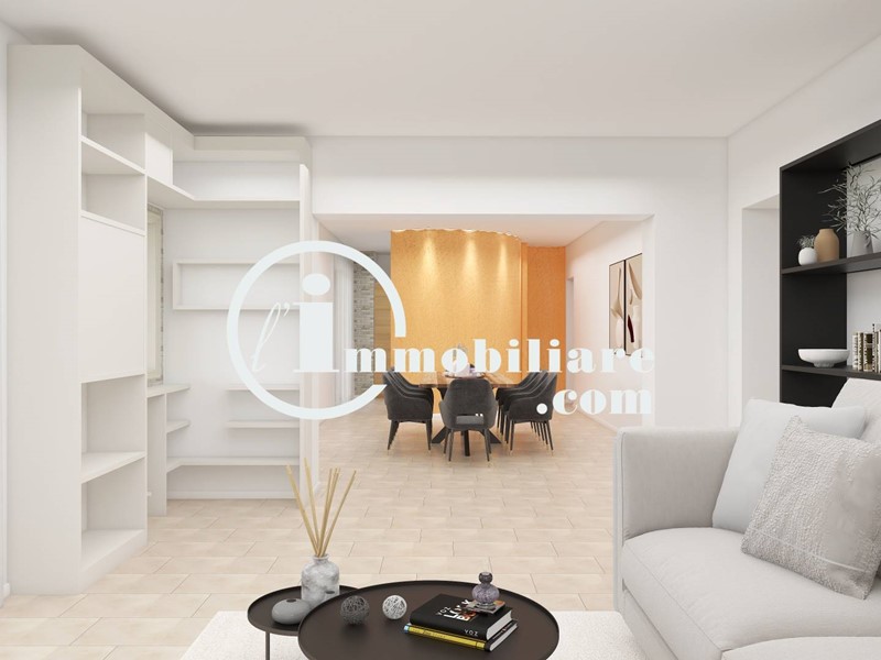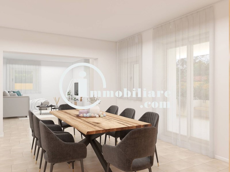 The internal spaces are distributed as follows: double independent entrance with living room and dining area, eat-in kitchen, hallway, 2 large bedrooms, 1 small bedroom, 3 bathrooms.