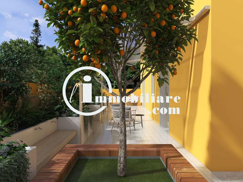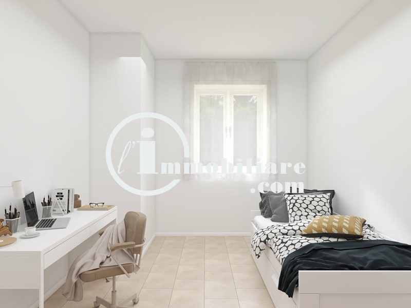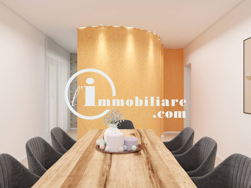 Gli ambienti interni sono così distribuiti: doppio ingresso indipendente con salotto e zona pranzo, cucina abitabile, disimpegno, 2 grandi camere da letto, 1 cameretta, 3 servizi.
