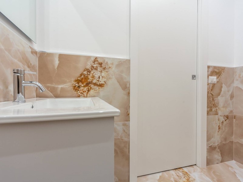 L'appartamento è composto da: ingresso nel soggiorno con cucina a vista attrezzata, disimpegno con armadiature, camera matrimoniale, seconda camera/studio e 2 bagni. Completa la proprietà una comoda cantina. Infissi di grandi dimensioni ad alto isolamento, tapparelle elettriche, porta blindata, climatizzazione e illuminazione a faretti e strisce led.