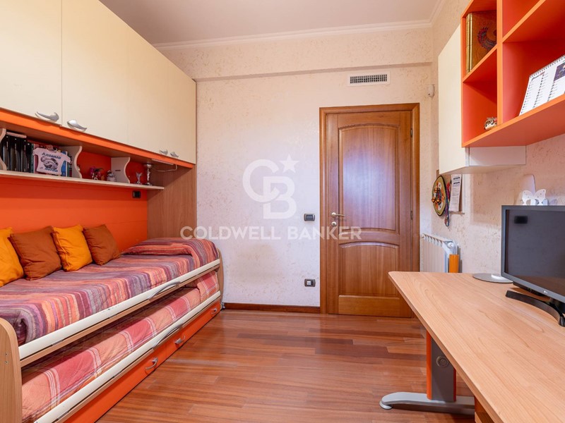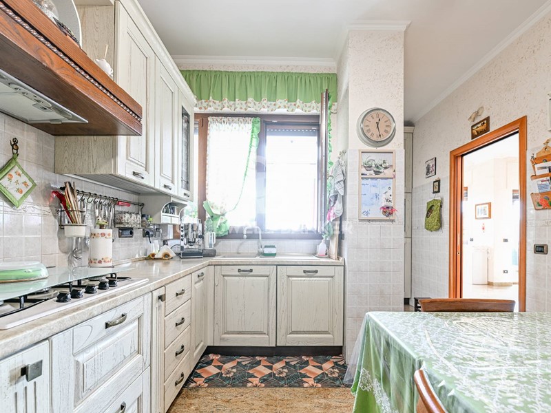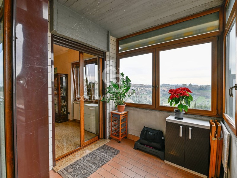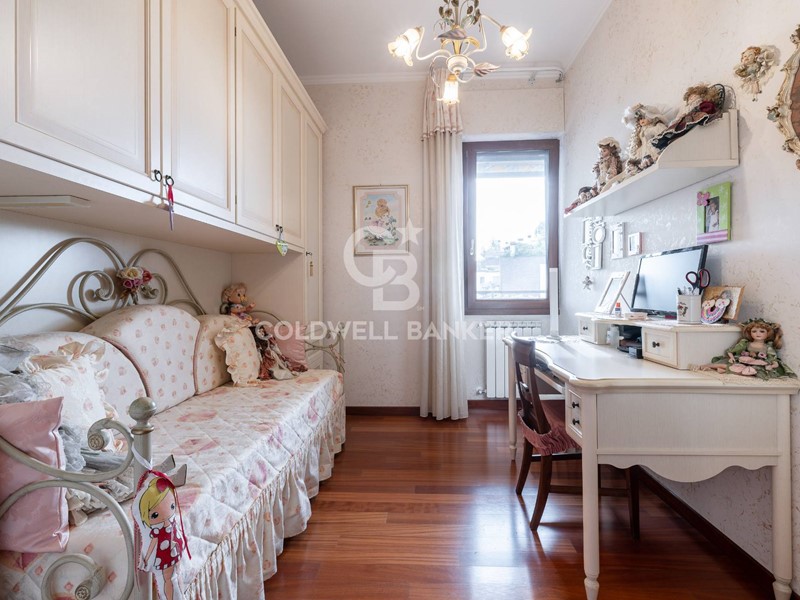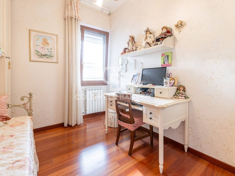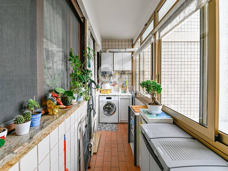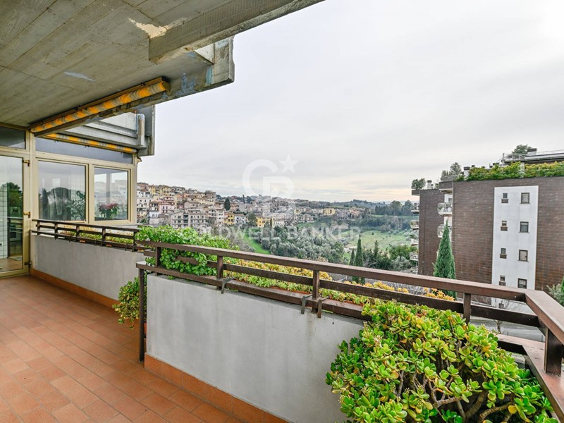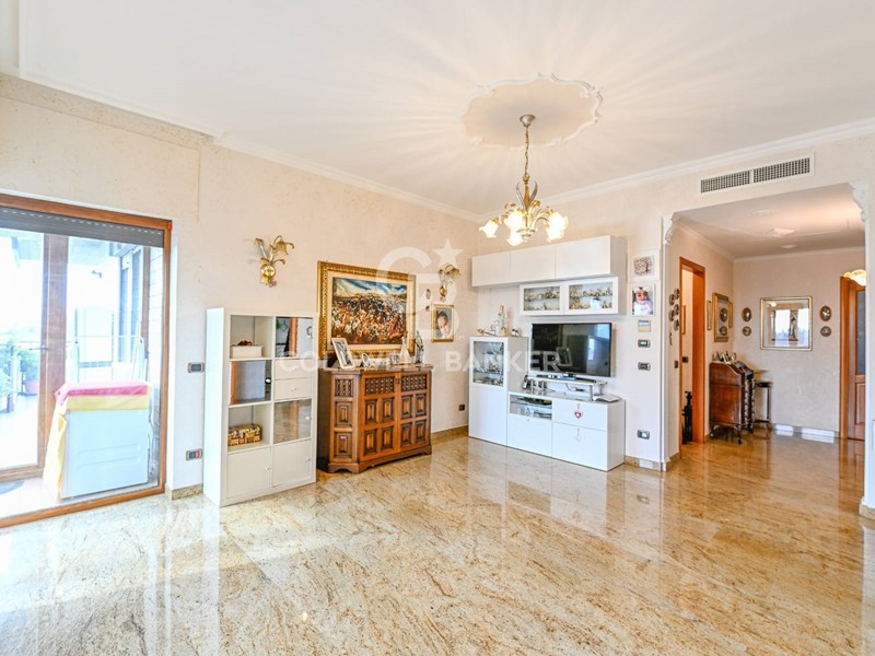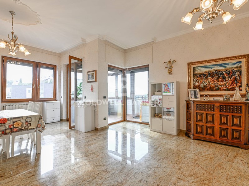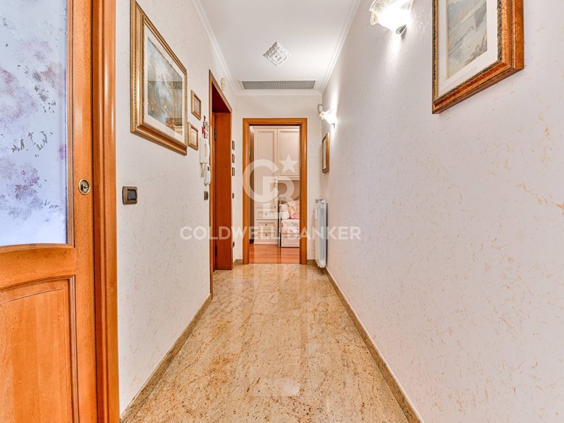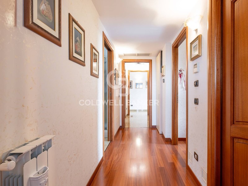 Lappartamento si presenta con ambienti ampi e ben distribuiti. Lingresso conduce a un elegante salone doppio e a una cucina abitabile, mentre un pratico disimpegno introduce la camera da letto matrimoniale, altre tre camere, uno studio e tre bagni finestrati, uno dei quali dotato di accesso privato da una delle camere. La cucina, il salone e tre delle camere si affacciano direttamente su un balcone verandato e su un terrazzo, garantendo luminosità e continuità tra gli spazi interni ed esterni.