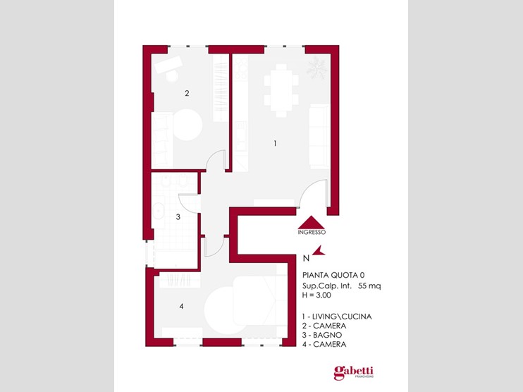 L'appartamento accoglie con un ampio e luminoso living con cucina a vista, uno spazio pensato per unire convivialità ed eleganza in un ambiente moderno e funzionale. La zona notte si compone di una prima camera versatile, ideale come studio o cameretta, un bagno rifinito con gusto e una spaziosa camera matrimoniale, perfetta per garantire comfort e tranquillità.