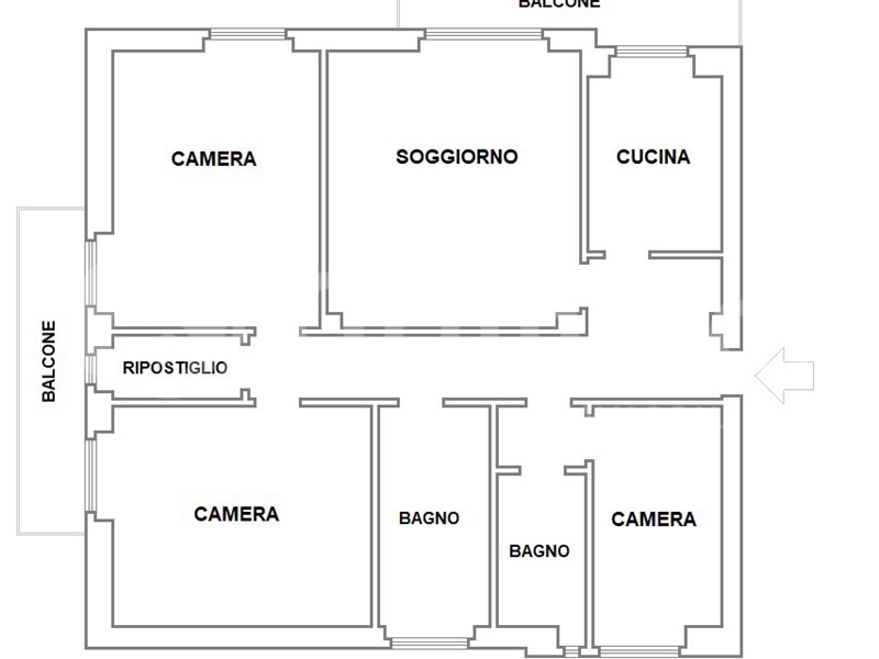 L'appartamento è così suddiviso: ingresso, ampia sala con accesso al primo balcone, cucina abiatbile, due camere matrimoniali di ampie dimensioni (con uscita su un'ulteriore balconata), una camera singola, doppi servizi e ripostiglio. Le condizioni interne sono buone e l'appartamento è subito disponibile.