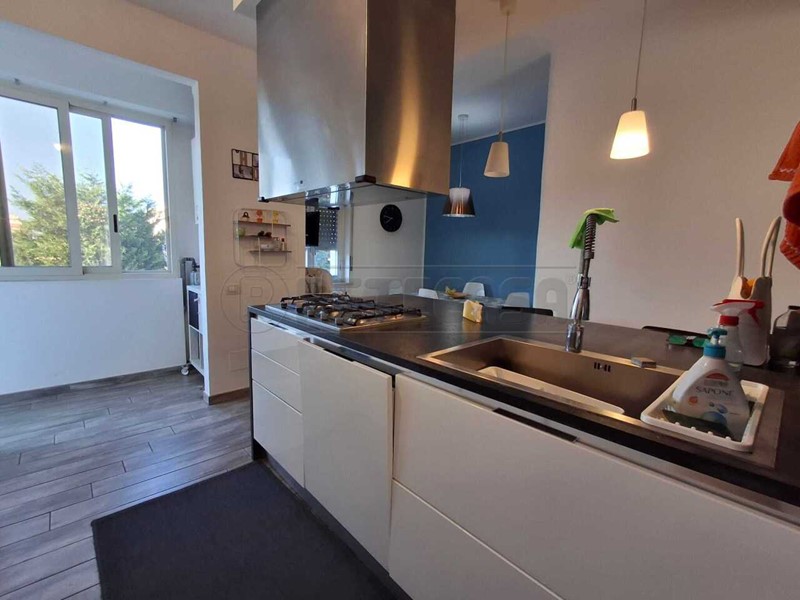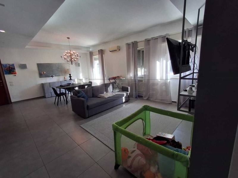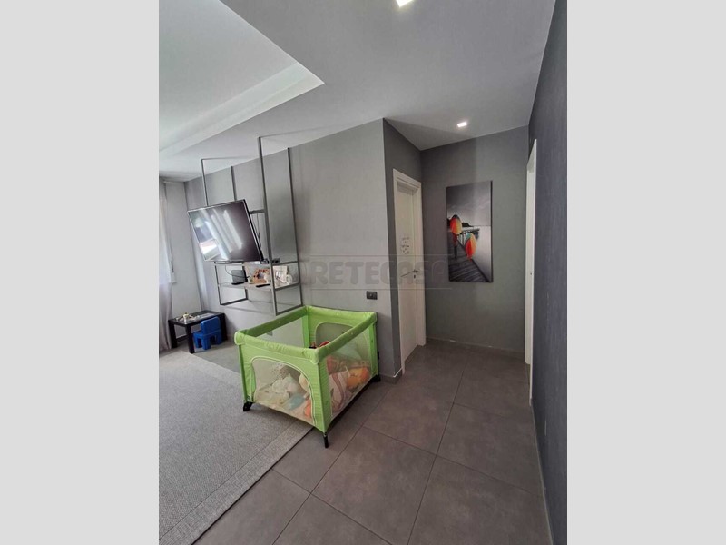 Retecasa propone in vendita un appartamento di cinque vani, della superficie di circa 120 metri quadrati, piu' un garage di 18 metri quadrati. L’immobile viene offerto completo di arredo dallo stile giovanile e contemporaneo, caratterizzato da un design ricercato e selezionato con particolare attenzione ai dettagli estetici e funzionali.