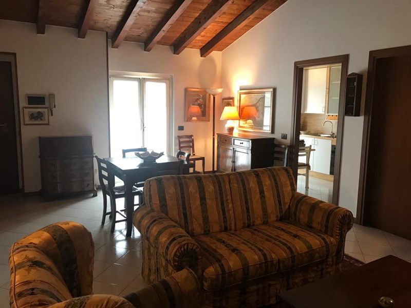 In palazzina di due unità, contesto molto tranquillo, affittiamo bellissimo bilocale arredato e corredato con ampia terrazza e climatizzato. Travi a vista e mansardata, la soluzione ospita un ampio soggiorno con affaccio sul terrazzo, cucina separata abitabile, zona notte con spaziosa camera da letto matrimoniale, bagno con box doccia e comodo locale sottotetto uso lavanderia/ripostiglio. Termo autonomo, poche spese condominiali. Libero da inizio Luglio ma già visionabile!
