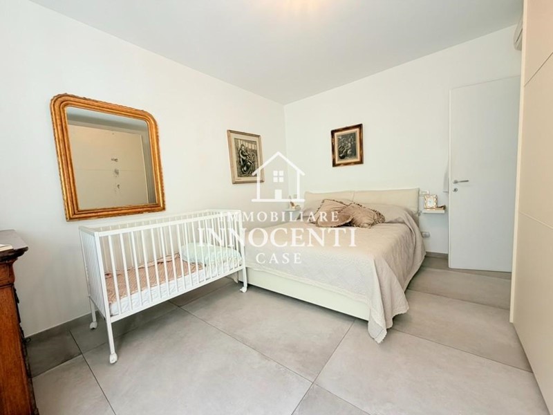 La zona notte è ben distribuita grazie a un disimpegno che conduce a una camera matrimoniale, una cameretta e due bagni finestrati: uno dotato di doccia e l’altro di vasca, entrambi rifiniti con cura.