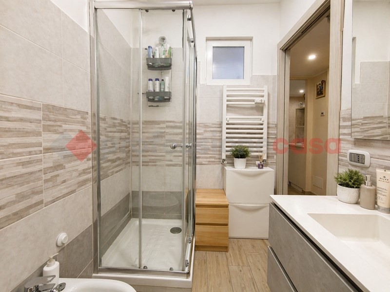 L'appartamento è stato finemente ristrutturato nel 2022 ed è dotato di ogni tipologia di confort, oltre ad infissi in doppio vetro e pvc, porta blindata, cancelletti di protezione in ferro; internamente si compone da: ingresso, soggiorno con angolo cottura, due camere da letto e doppi servizi di cui uno cieco.