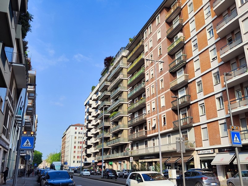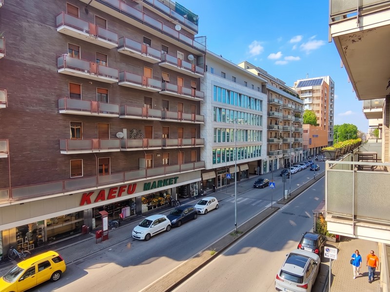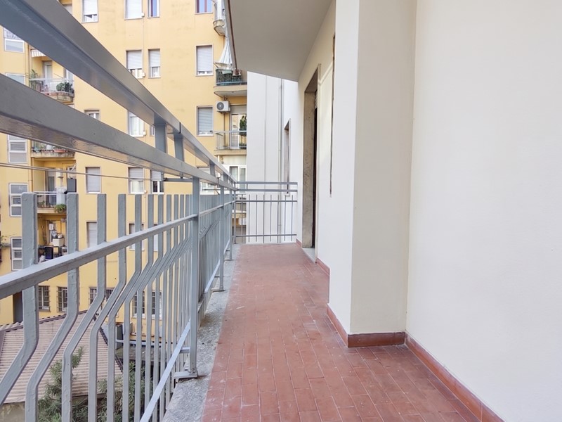 L'immobile, posto al secondo piano, è composto da un ampio soggiorno luminoso, dotato di doppio accesso ad un balcone con affaccio su Via Genova. La cucina è separata e abitabile, con accesso diretto a un balcone. È inoltre presente un cucinotto collegato, comodo e funzionale.
