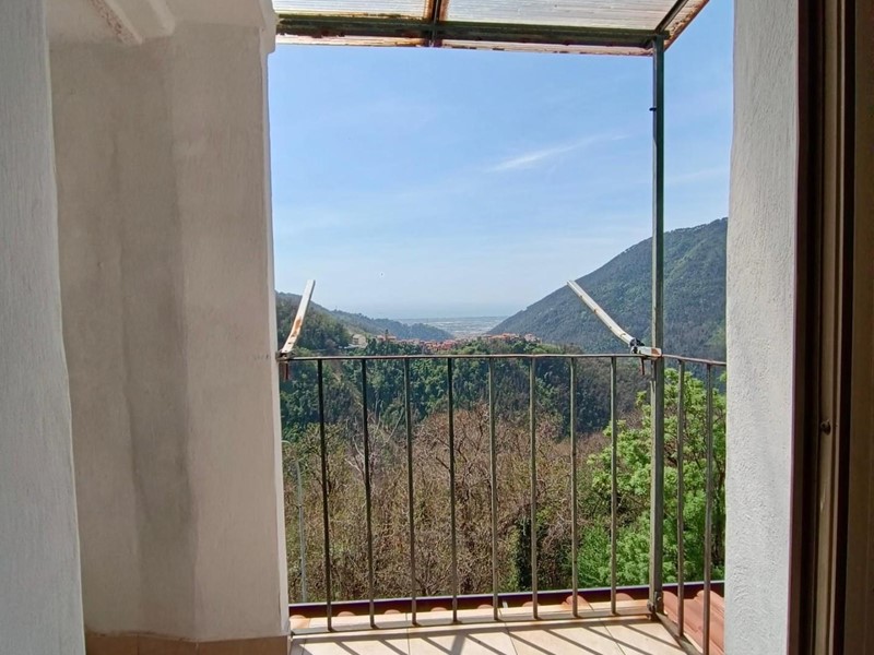 Dal piccolo balcone la vista spazia, attraverso le montagne, fino al mare.