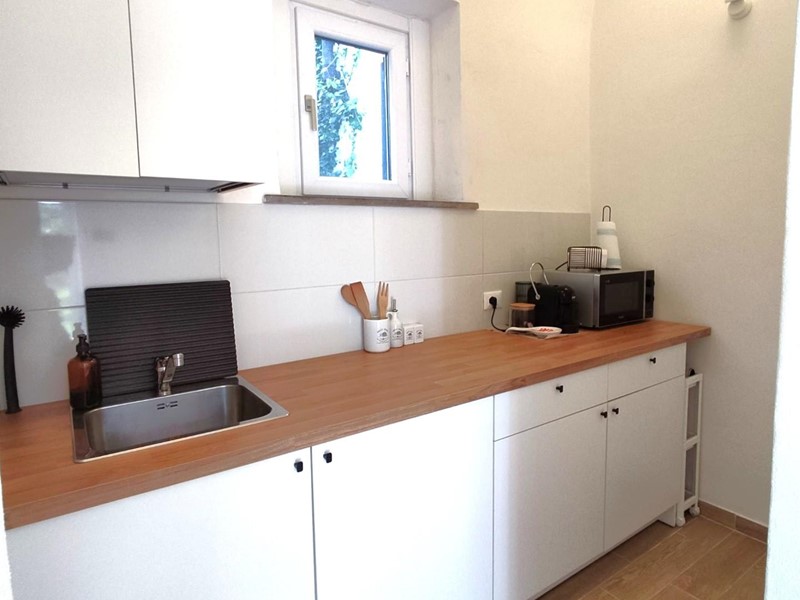 Passando da un piacevole giardino a comune chiuso da cancello, si arriva nel soggiorno/pranzo, al cucinotto ben attrezzato, al disimpegno con zona ripostiglio, al bagno ed alla camera matrimoniale.