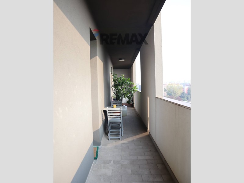 L'aspetto importante che caratterizza questo appartamento è la presenza di un'ampia area esterna coperta su cui affacciano le due portefinestre del soggiorno, quella del bagno e anche quella della camera da letto. Questo sfogo di generose dimensioni ti consentirà di passare del tempo all'aperto con i tuoi amici, consumando pranzi o cene godendo della vista sul verde.