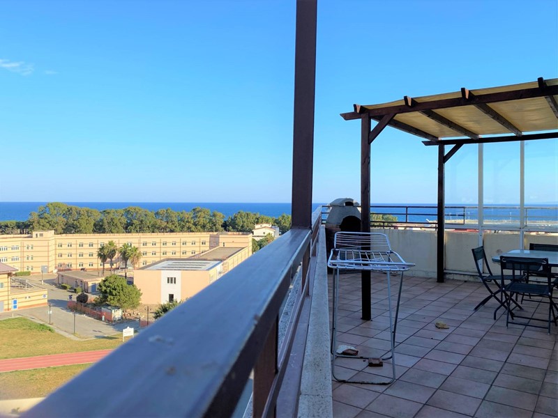 CASA VACANZA - A Catanzaro Lido, località Giovino, a breve distanza dal mare, attico finemente arredato posto al sesto piano in condominio servito di ascensore. All'interno è composto da: ingresso su soggiorno living con cucina a vista e accesso diretto al terrazzo con splendida vista sul mare, tre camere da letto e bagno con box doccia. Dotato di ambienti climatizzati. Disponibili 5 posti letto, Contratto transitorio 30 giorni, disponibile da Agosto.