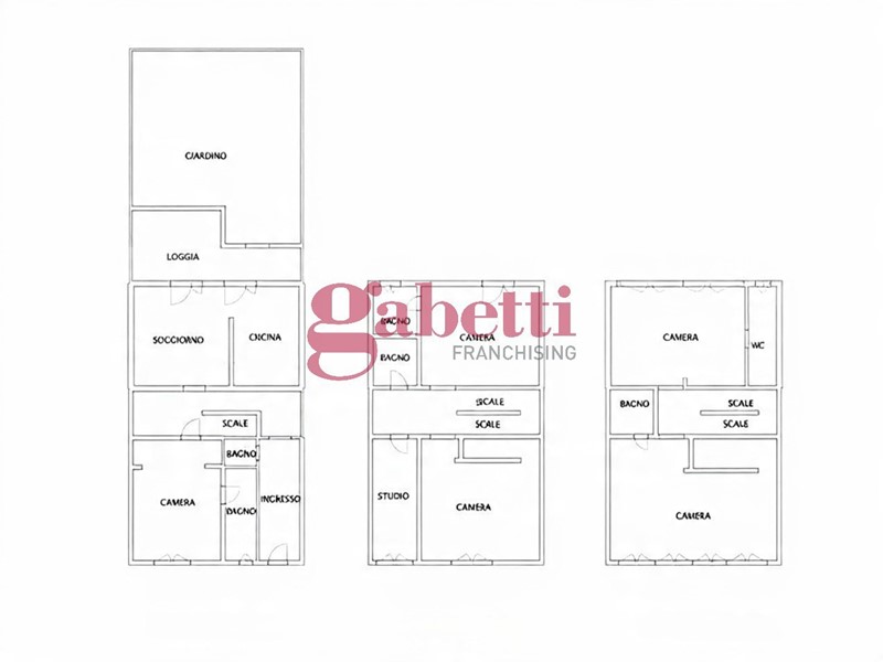 L'immobile, al piano rialzato, è composto da comodo ingresso, camera da letto matrimoniale con bagno finestrato, cucina e sala da pranzo che accedono al grande giardino in parte verandato e ideale per colazioni e momenti di relax. Il primo piano ospita 3 camere da letto, di cui una singola, e 2 bagni. Al secondo piano troviamo 2 camere da letto matrimoniali entrambe bagno privato.